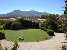 It also has a single bed so could be used as a twin. The room (23 m2) opens up onto a large southerly facing terrace providing views of the Pyrenees and the sacred Mount Canigou. The room has access to luxury ensuite bathroom (9 m2) with sink , WC and an angle bath that contains a seated shower. Why not have breakfast on your terrace overlooking the mountains. You are welcome to bring food and drink back for lunch and dinner. Room also has tea and coffee making facilities, hairdryer,fan, TV and mini fridge.