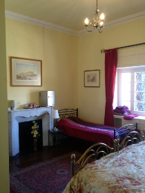 It also has a single bed so could be used as a twin. The room (23 m2) opens up onto a large southerly facing terrace providing views of the Pyrenees and the sacred Mount Canigou. The room has access to luxury ensuite bathroom (9 m2) with sink , WC and an angle bath that contains a seated shower. Why not have breakfast on your terrace overlooking the mountains. You are welcome to bring food and drink back for lunch and dinner. Room also has tea and coffee making facilities, hairdryer,fan, TV and mini fridge.