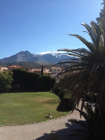 It also has a single bed so could be used as a twin. The room (23 m2) opens up onto a large southerly facing terrace providing views of the Pyrenees and the sacred Mount Canigou. The room has access to luxury ensuite bathroom (9 m2) with sink , WC and an angle bath that contains a seated shower. Why not have breakfast on your terrace overlooking the mountains. You are welcome to bring food and drink back for lunch and dinner. Room also has tea and coffee making facilities, hairdryer,fan, TV and mini fridge.