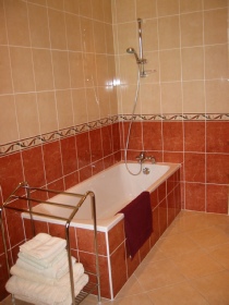 au sud et à l'ouest. La salle de bain (5,5 m2) a une baignoire avec douche fixation