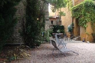 View from our garage to Gite Madres on left, our house on right