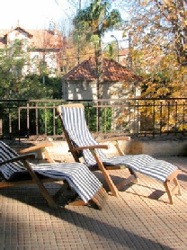 It also has a single bed so could be used as a twin. The room (23 m2) opens up onto a large southerly facing terrace providing views of the Pyrenees and the sacred Mount Canigou. The room has access to luxury ensuite bathroom (9 m2) with sink , WC and an angle bath that contains a seated shower. Why not have breakfast on your terrace overlooking the mountains. You are welcome to bring food and drink back for lunch and dinner. Room also has tea and coffee making facilities, hairdryer,fan, TV and mini fridge.